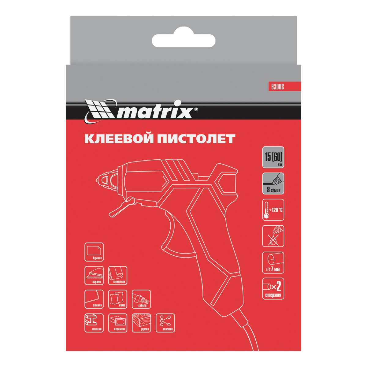 Купить Клеевой пистолет, 7 мм, 15 (60) Вт, 8 г/мин Matrix V2214 по лучшей цене с доставкой - интернет магазин №1 в России