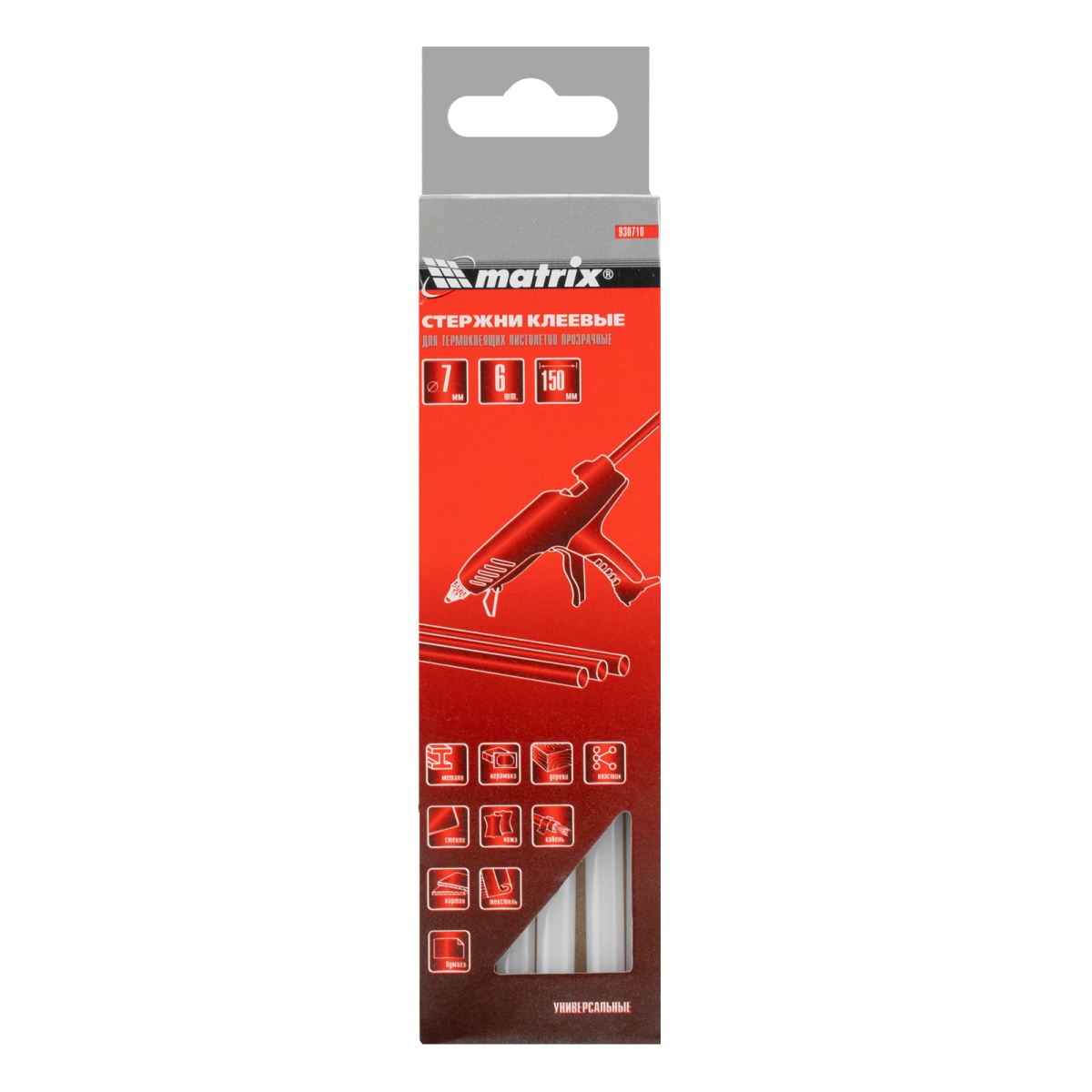 Купить Стержни клеевые, прозрачные, 7 х 150 мм, в упаковке 6 шт Matrix V6814 по лучшей цене с доставкой - интернет магазин №1 в России