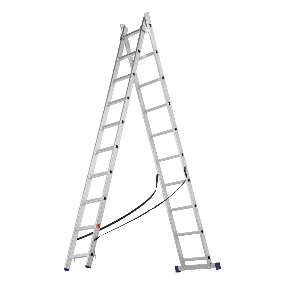 Купить Лестница, 2 х 10 ступеней, алюминиевая, двухсекционная, Сибртех V3644 по лучшей цене с доставкой - интернет магазин №1 в России
