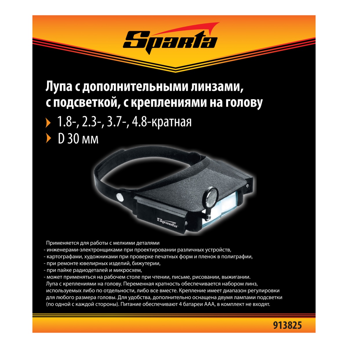 Купить Лупа с дополнительными линзами, с подсветкой, для закрепления на голове Sparta V3806 по лучшей цене с доставкой - интернет магазин №1 в России