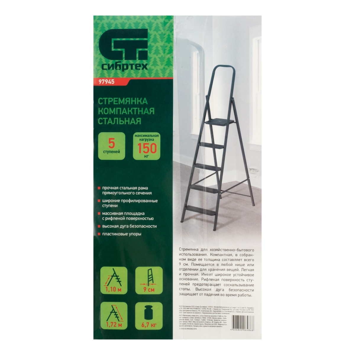 Купить Стремянка 5 ступеней, компактная, стальная Сибртех V6819 по лучшей цене с доставкой - интернет магазин №1 в России