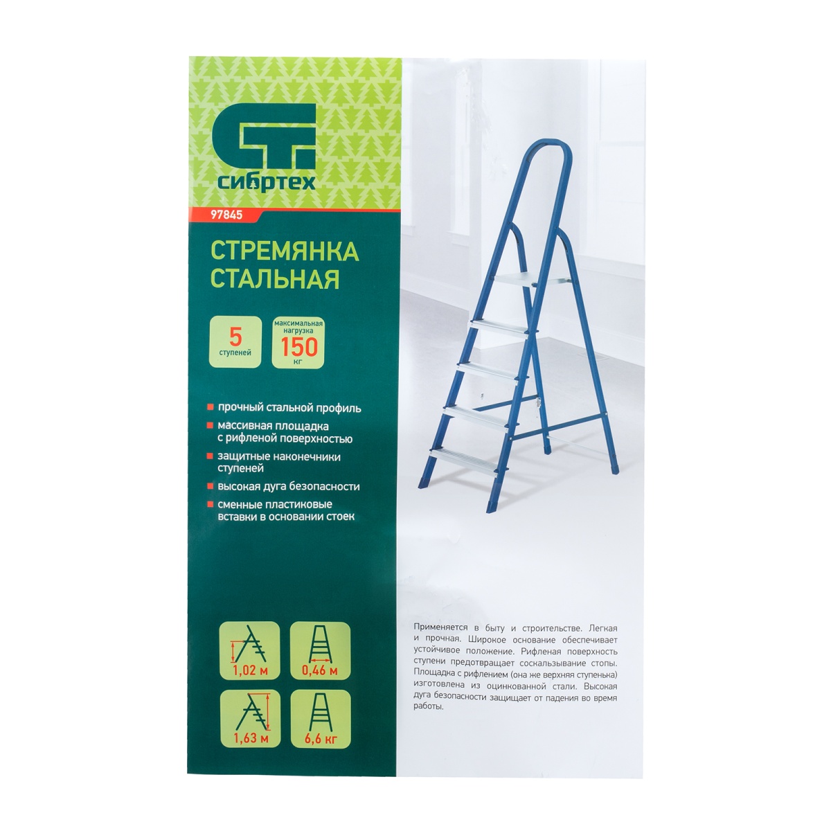 Купить Стремянка, 5 ступеней, стальная, Сибртех V6852 по лучшей цене с доставкой - интернет магазин №1 в России