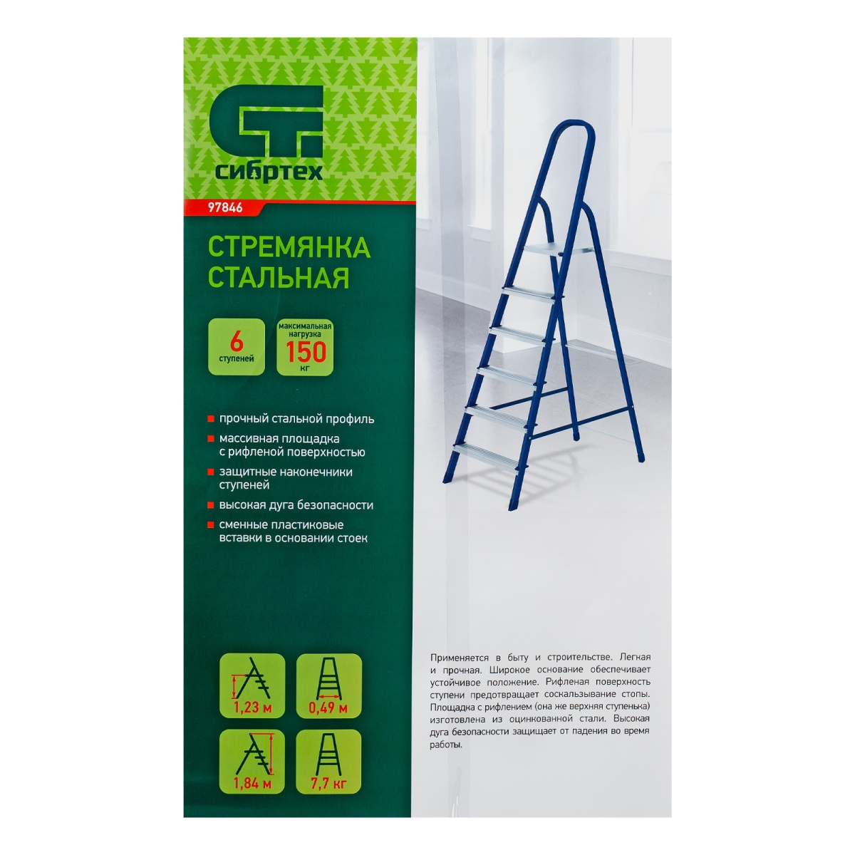 Купить Стремянка, 6 ступеней, стальная, Сибртех V6856 по лучшей цене с доставкой - интернет магазин №1 в России