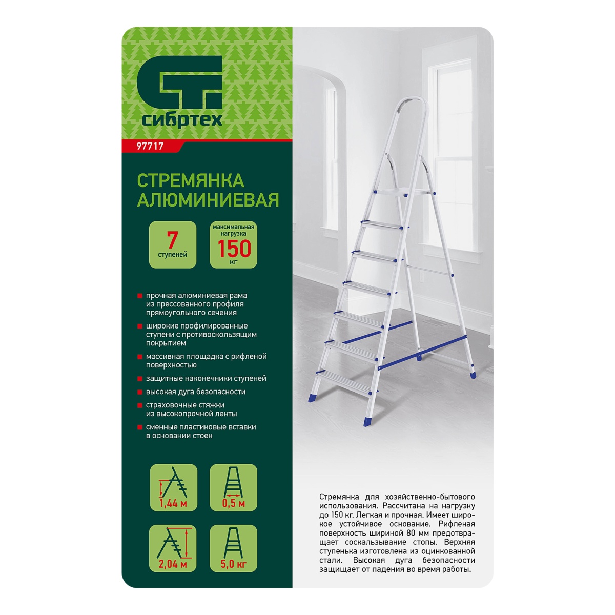 Купить Стремянка, 7 ступеней, алюминиевая, Сибртех V6858 по лучшей цене с доставкой - интернет магазин №1 в России