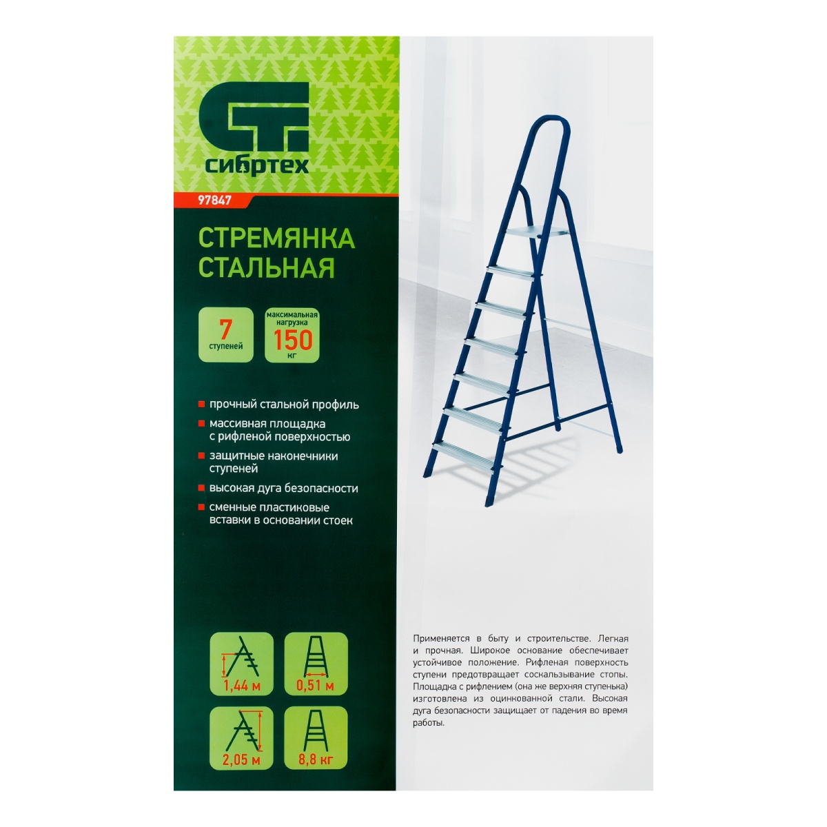 Купить Стремянка, 7 ступеней, стальная, Сибртех V6860 по лучшей цене с доставкой - интернет магазин №1 в России