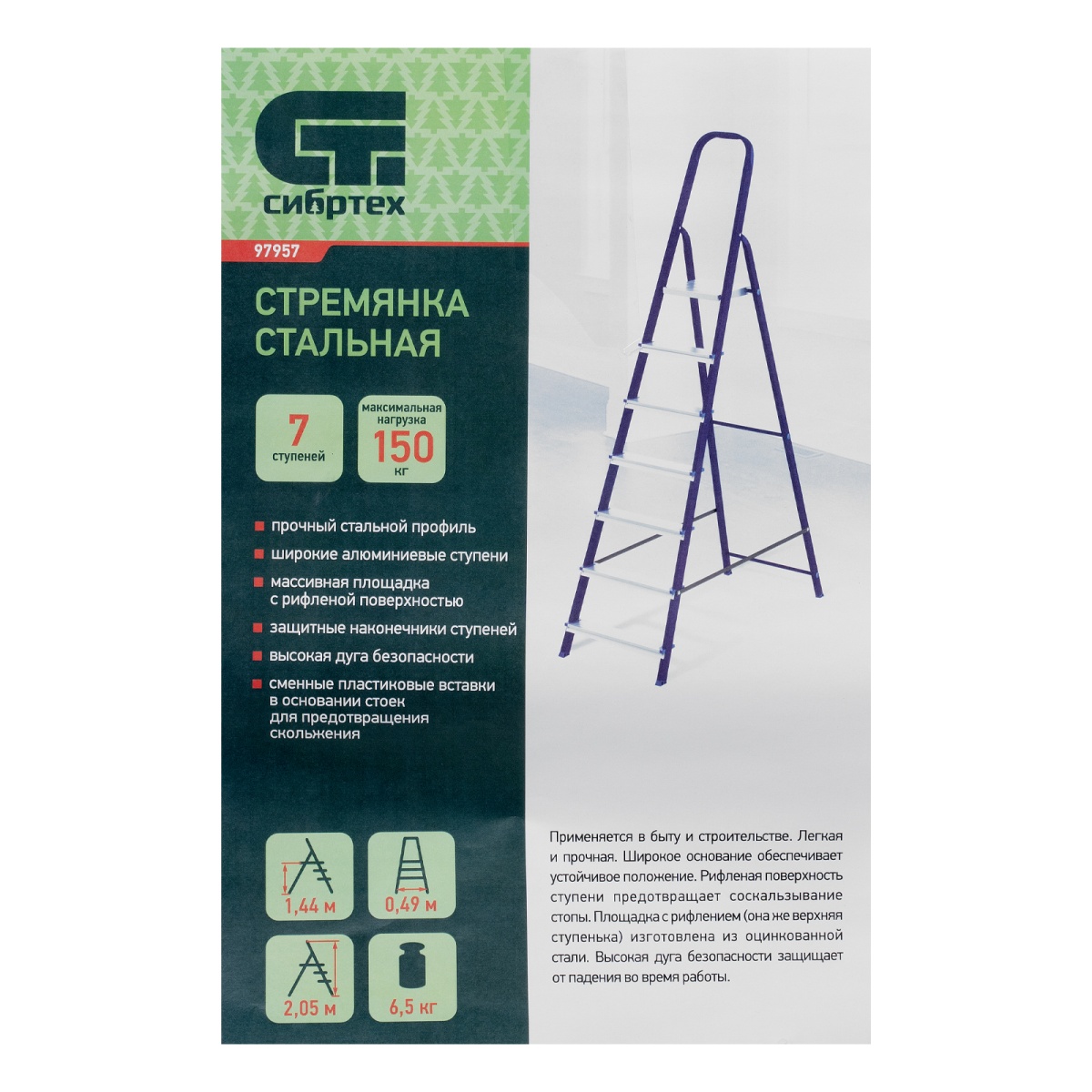 Купить Стремянка, 7 ступеней, стальной профиль, алюминиевые ступени Сибртех V6861 по лучшей цене с доставкой - интернет магазин №1 в России