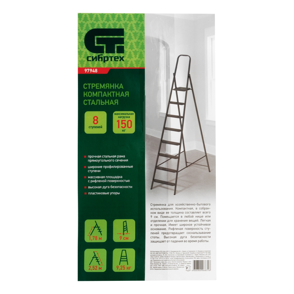 Купить Стремянка 8 ступеней, компактная, стальная Сибртех V6822 по лучшей цене с доставкой - интернет магазин №1 в России