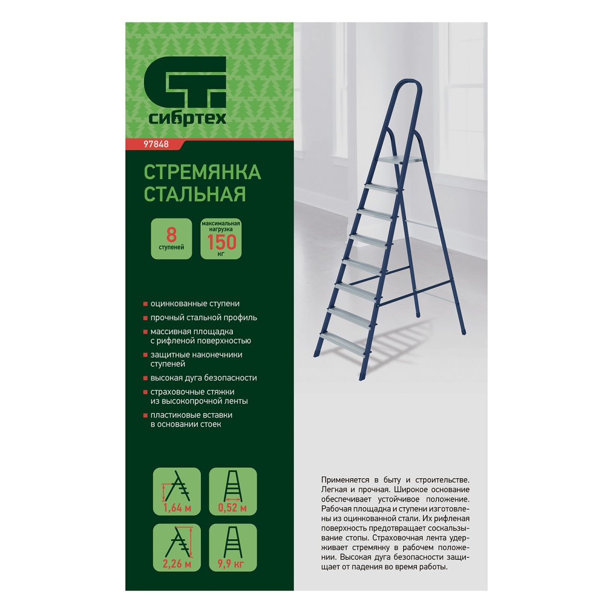Купить Стремянка, 8 ступеней, стальная, Сибртех V6863 по лучшей цене с доставкой - интернет магазин №1 в России