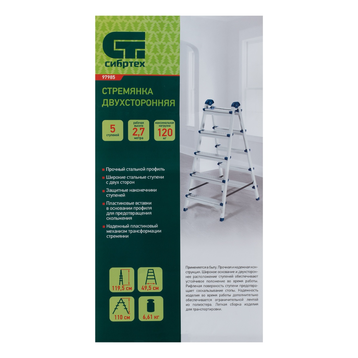 Купить Стремянка двухсторонняя 5 ступеней, сталь профиль, стальные ступени, Сибртех V6836 по лучшей цене с доставкой - интернет магазин №1 в России