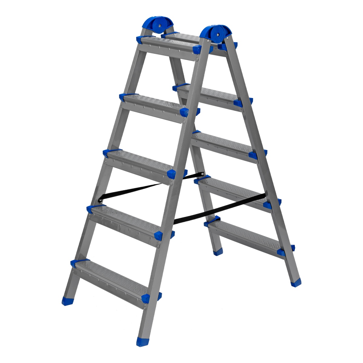 Стремянка двухсторонняя 5 ступеней, сталь профиль, стальные ступени, Сибртех