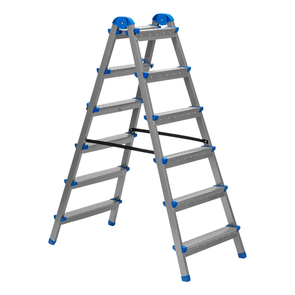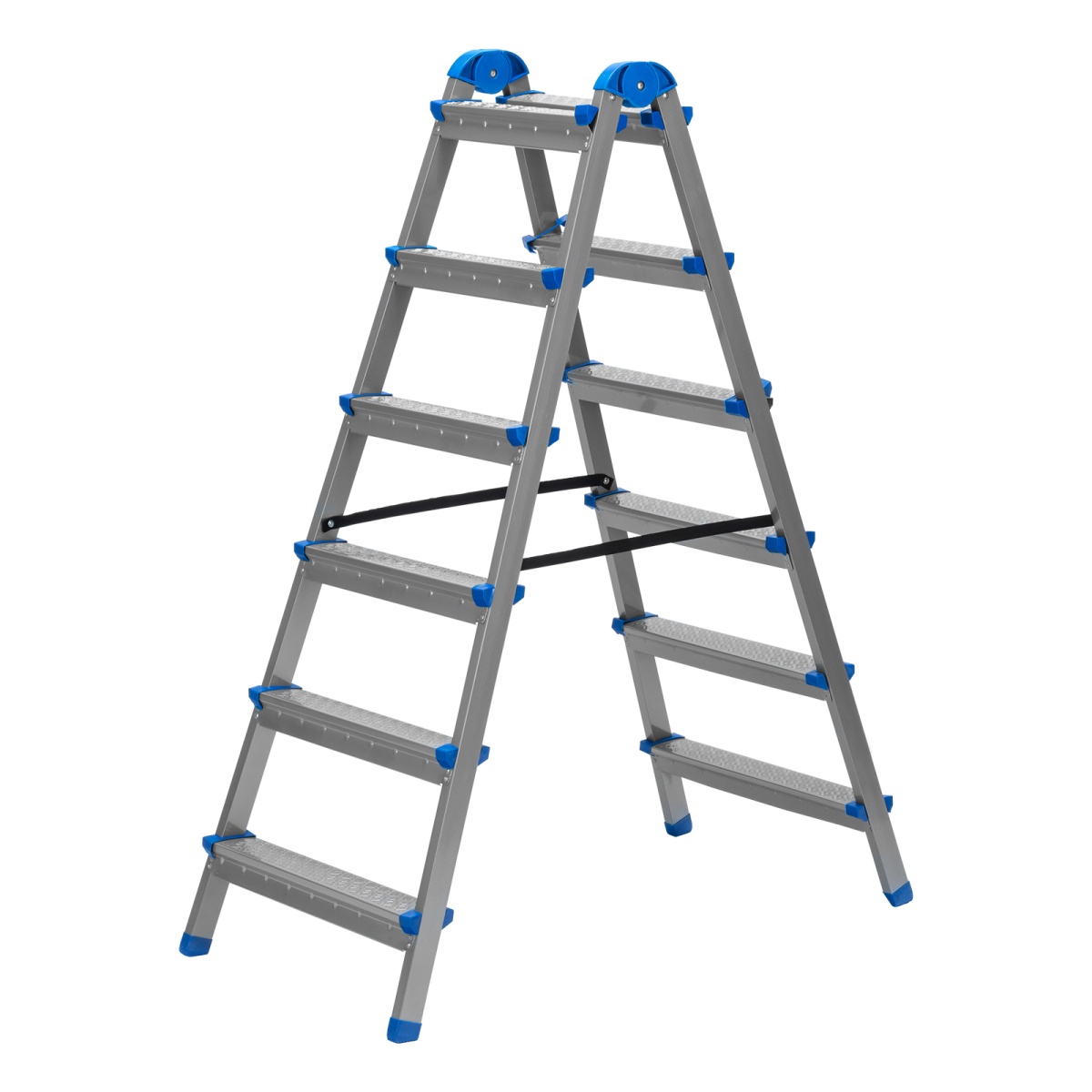 Стремянка двухсторонняя 6 ступеней, сталь профиль, стальные ступени, Сибртех