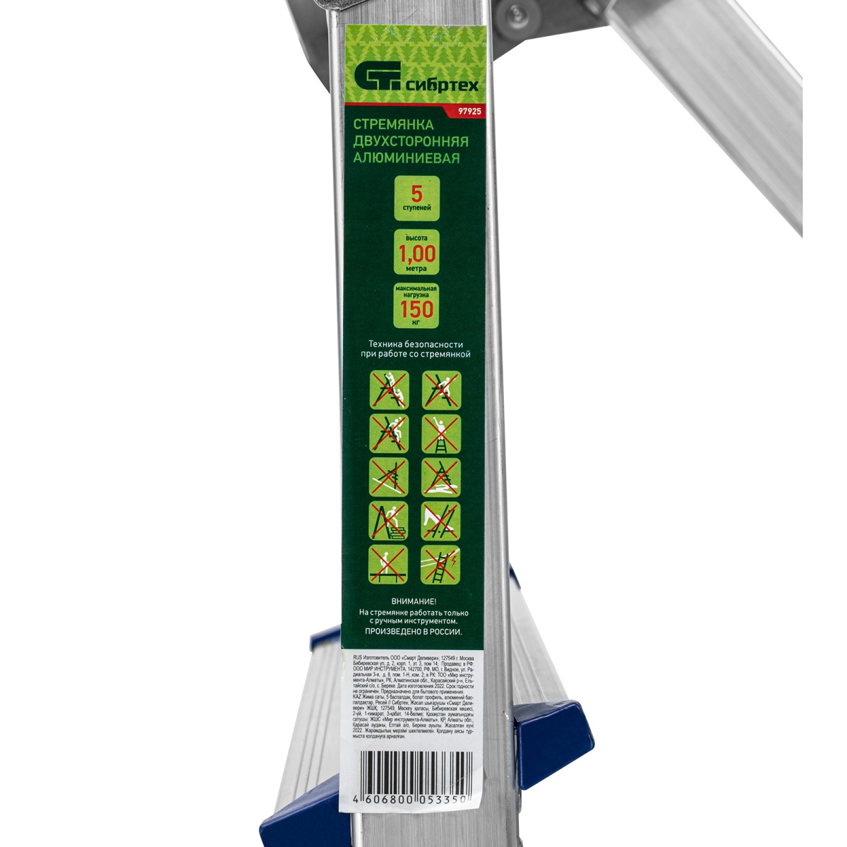 Купить Стремянка двусторонняя 5 ступеней, алюминиевая, Сибртех V6829 по лучшей цене с доставкой - интернет магазин №1 в России