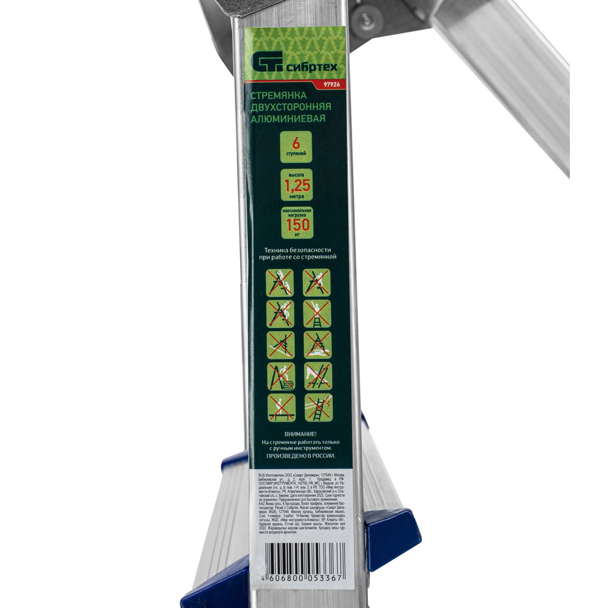 Купить Стремянка двусторонняя 6 ступеней, алюминиевая, Сибртех V6831 по лучшей цене с доставкой - интернет магазин №1 в России