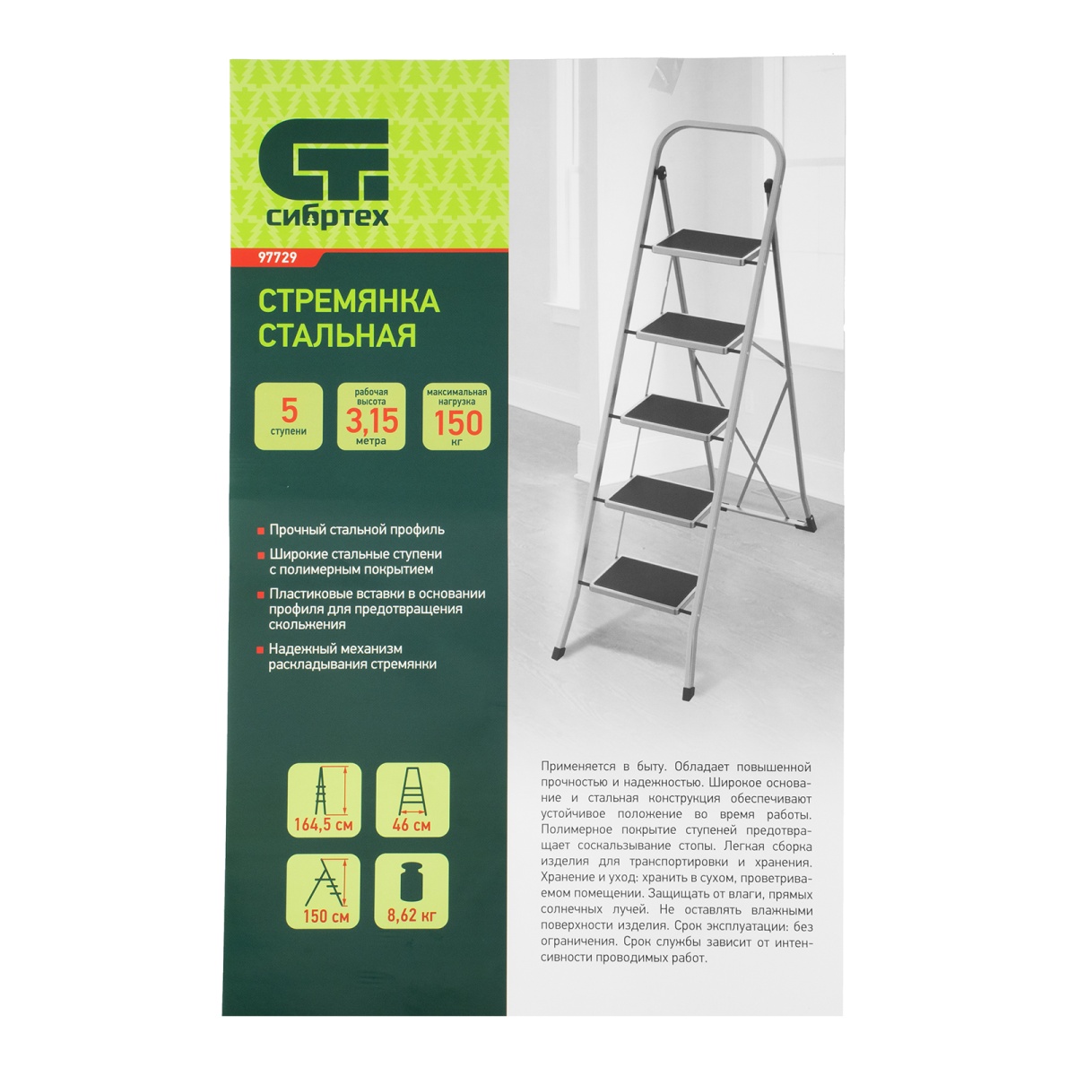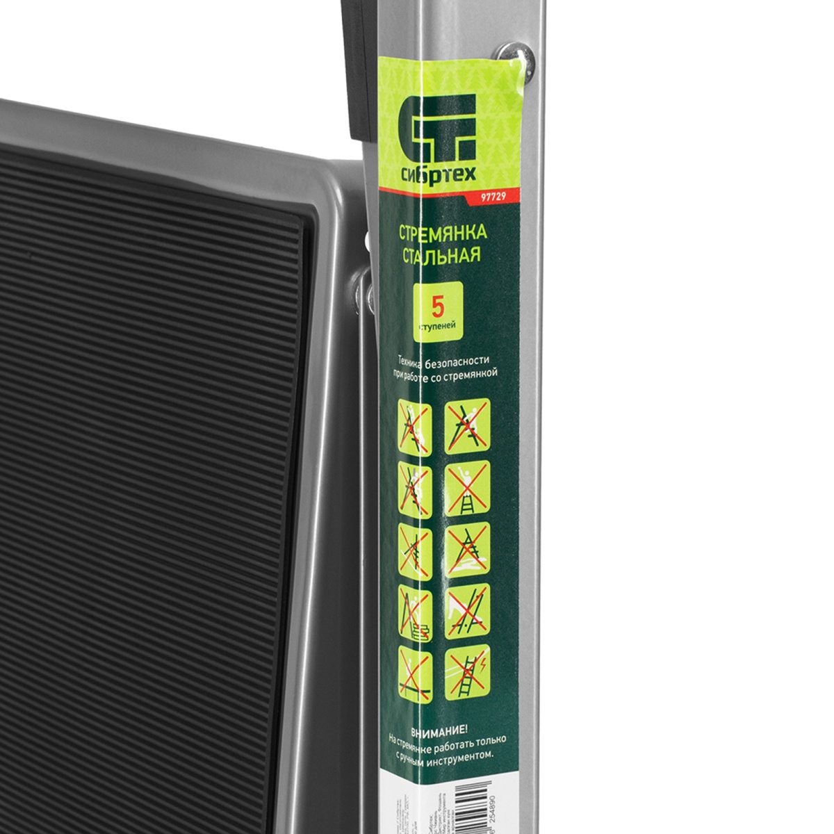Купить Стремянка стальная, 5 широких ступеней 20х30 см с полимерным покрытием Сибртех V6839 по лучшей цене с доставкой - интернет магазин №1 в России