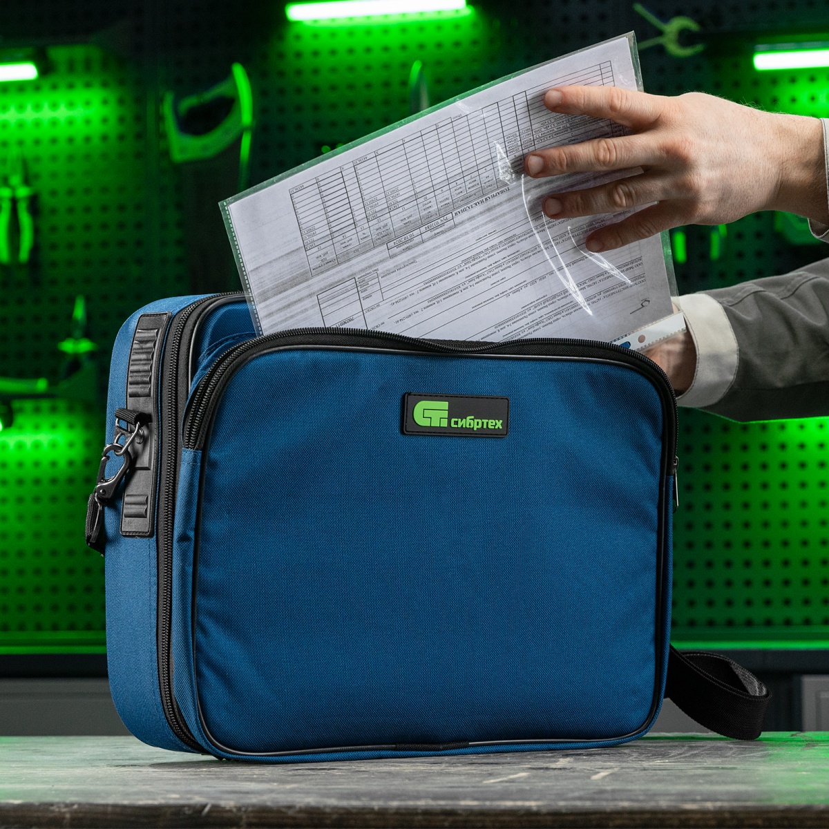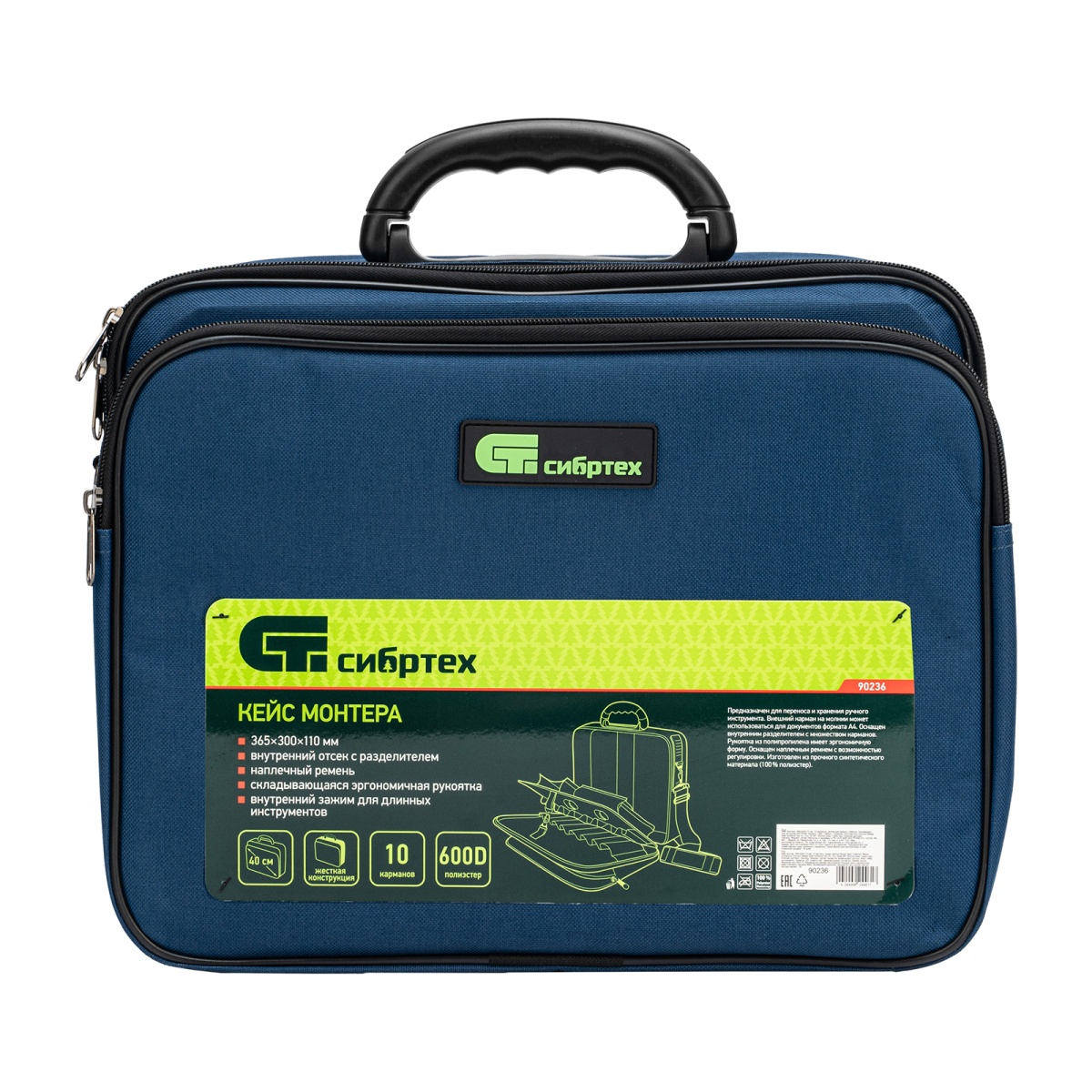 Наличие клапана для сброса давления Кейс монтера, 365х300х110 мм, 10 карманов, наплечный ремень Сибртех