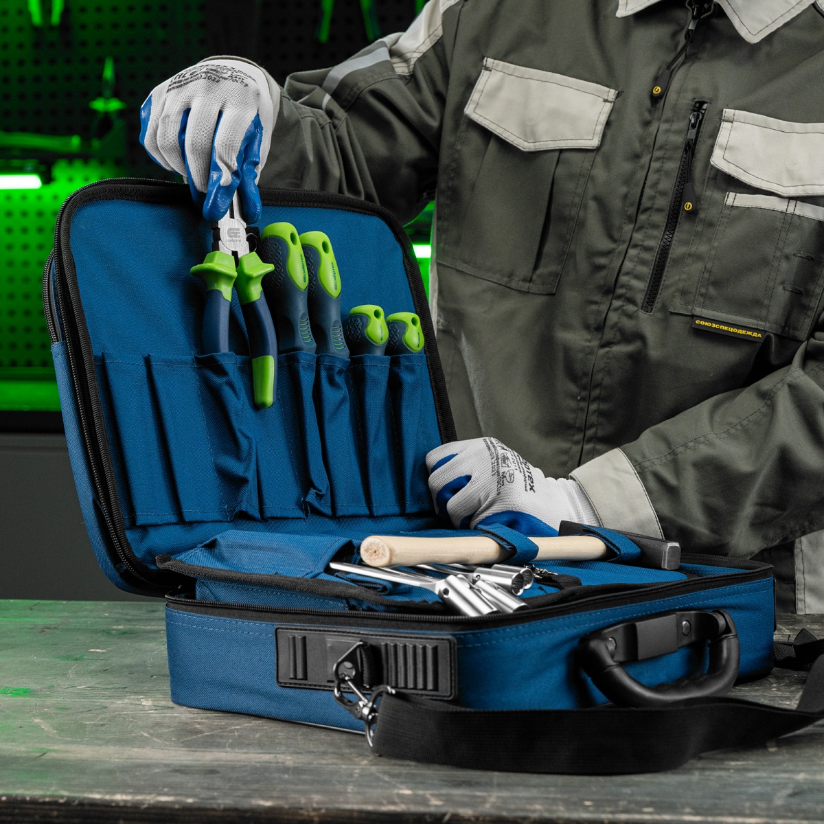 Кейс монтера, 365х300х110 мм, 10 карманов, наплечный ремень Сибртех