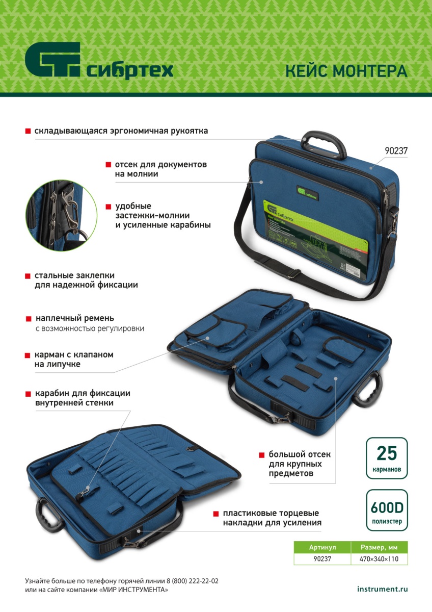 Купить Кейс монтера, 470х340х110 мм, 25 карманов, наплечный ремень Сибртех V2005 по лучшей цене с доставкой - интернет магазин №1 в России