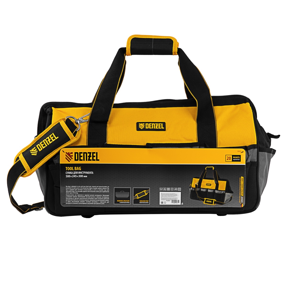 Купить Сумка для инструмента, 500х245х300 мм, 20 карман.,съемный органайз. 10 карман.,наплеч. рем. Denzel V6984 по лучшей цене с доставкой - интернет магазин №1 в России