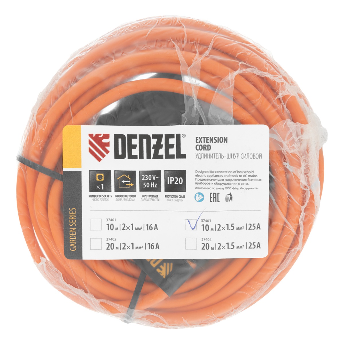 Купить Удлинитель-шнур силовой Garden Series, б/з, ПВС, 10м, 1 розетка, 2 x 1,5 мм, Denzel V7352 по лучшей цене с доставкой - интернет магазин №1 в России