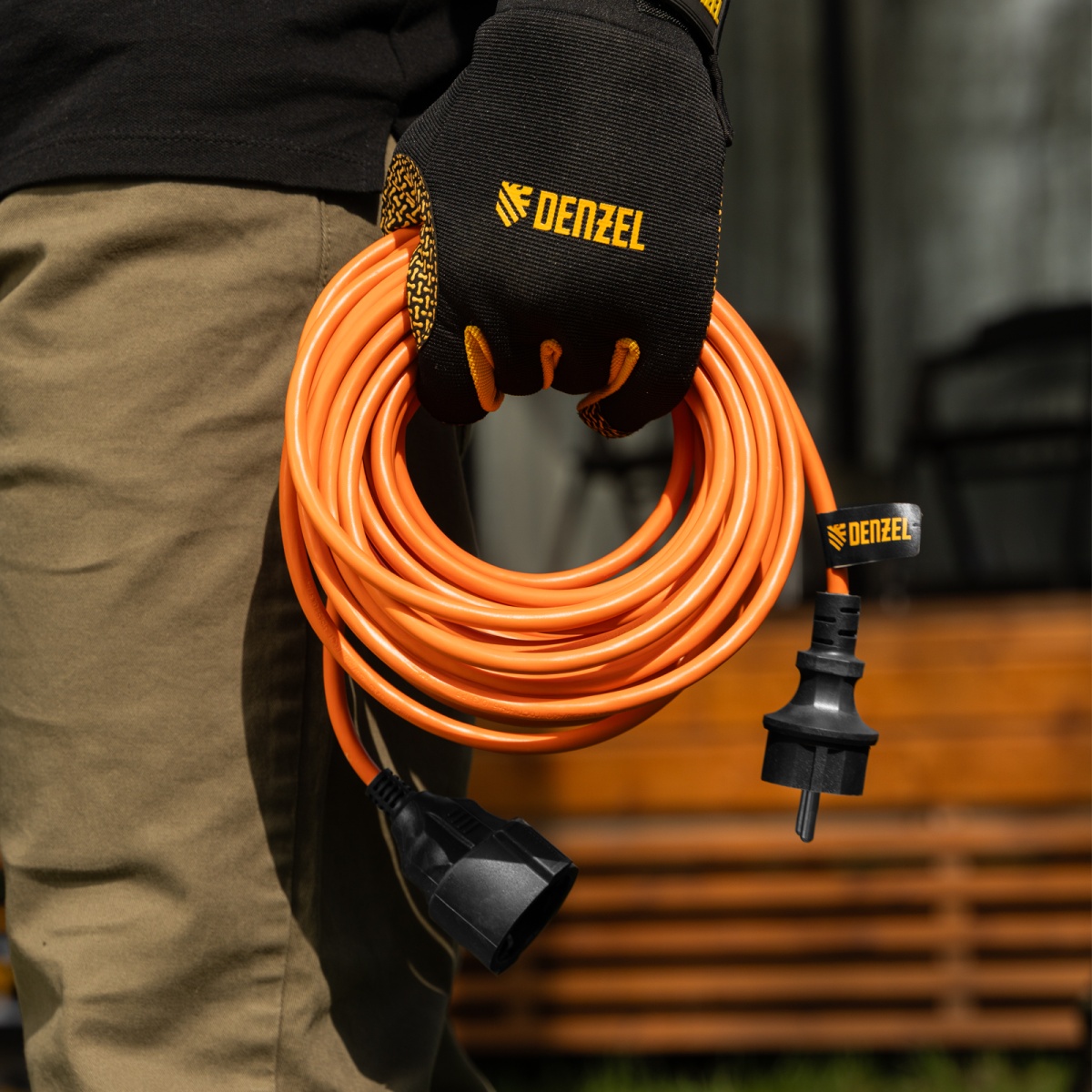 Удлинитель-шнур силовой Garden Series, ПВС, 10м, 1 розетка 3 x 1,5 мм, Denzel