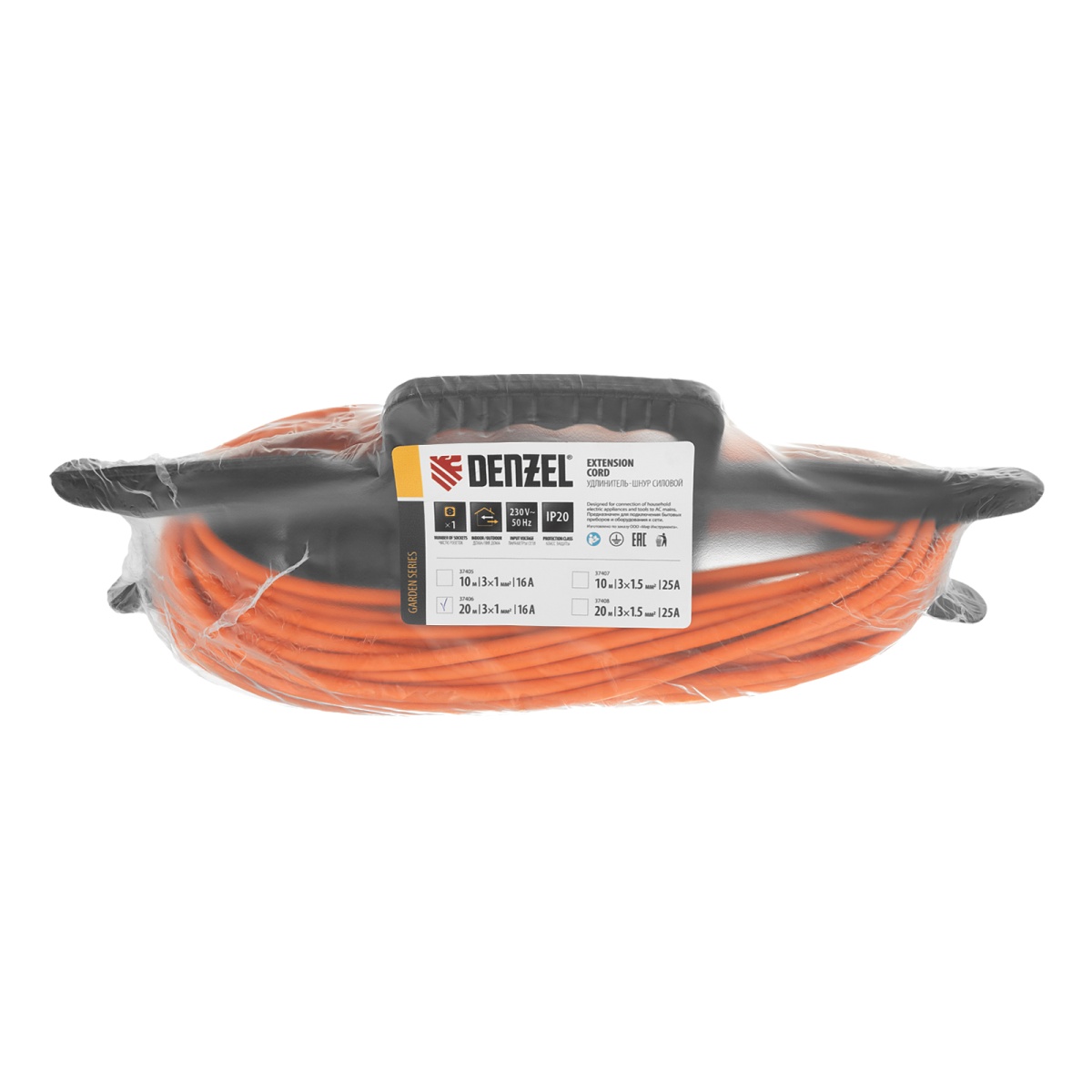 Купить Удлинитель-шнур силовой Garden Series, ПВС, 20м, 1 розетка 3 x 1 мм, Denzel V7355 по лучшей цене с доставкой - интернет магазин №1 в России