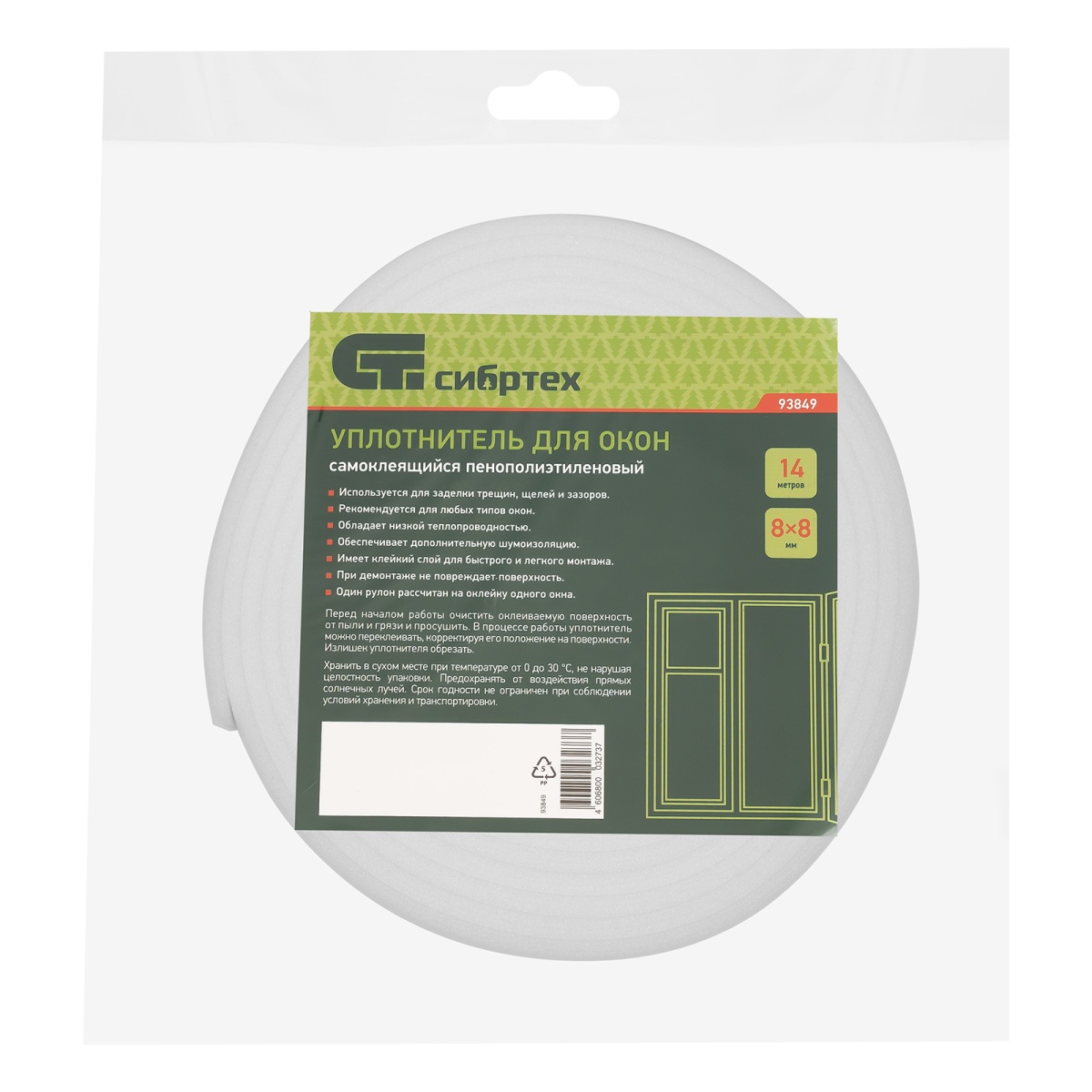 Купить Уплотнитель для окон самоклеящийся, 8 х 8 мм, 14 м Сибртех V7375 по лучшей цене с доставкой - интернет магазин №1 в России