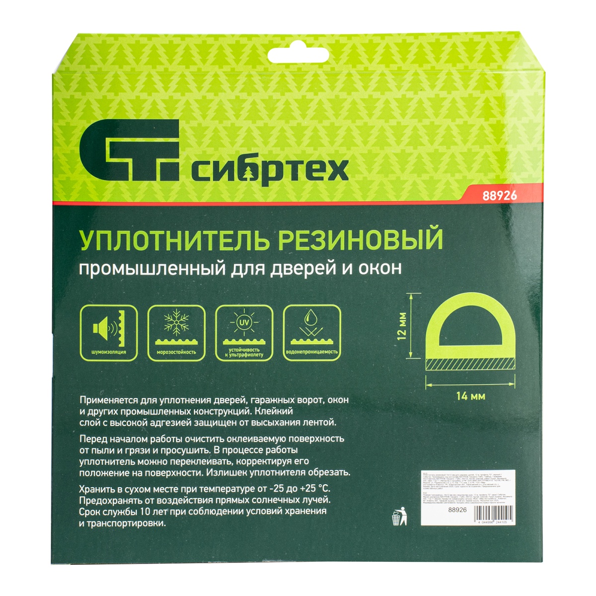 Купить Уплотнитель резиновый 14х12 мм для широких щелей, 12 м, профиль "D", черный Сибртех V7376 по лучшей цене с доставкой - интернет магазин №1 в России