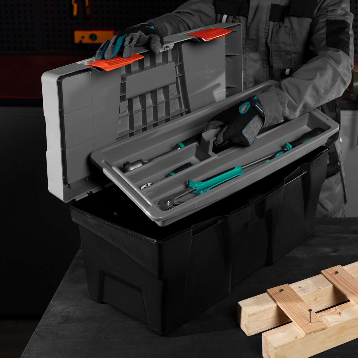 Наличие клапана для сброса давления Ящик для инструмента 23", 590х300х300 мм, пластик Россия// Stels