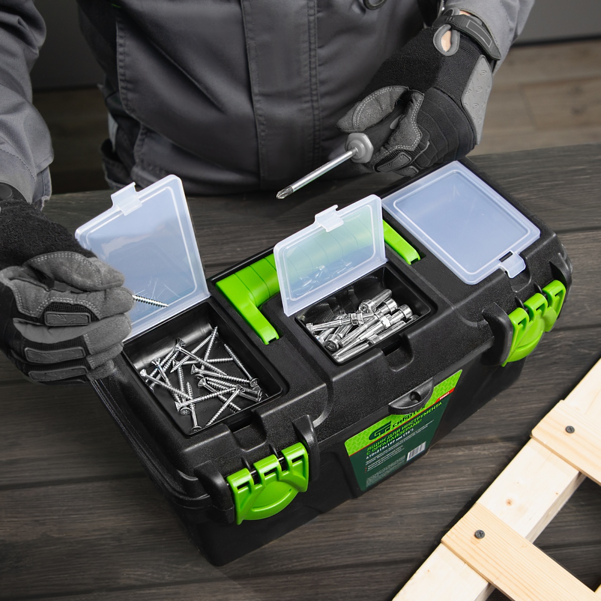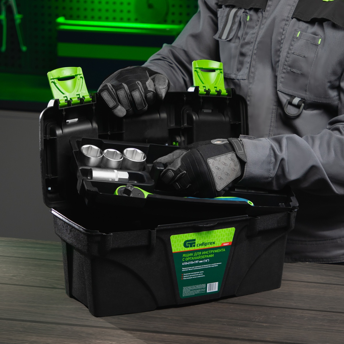 Наличие клапана для сброса давления Ящик для инструментов 16”, с органайзерами Сибртех