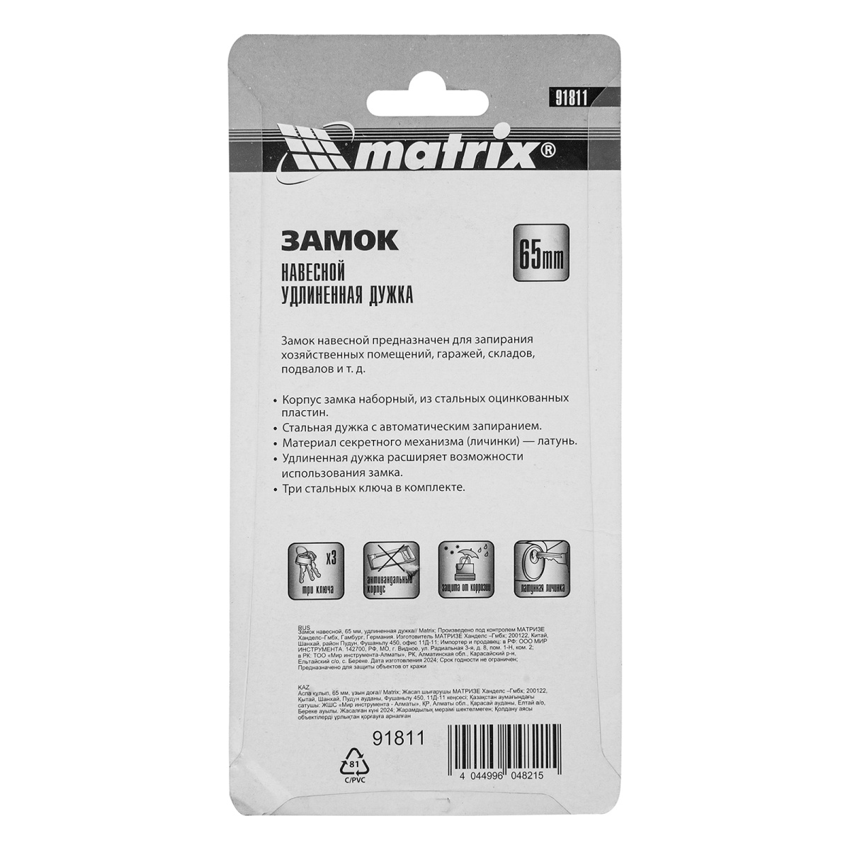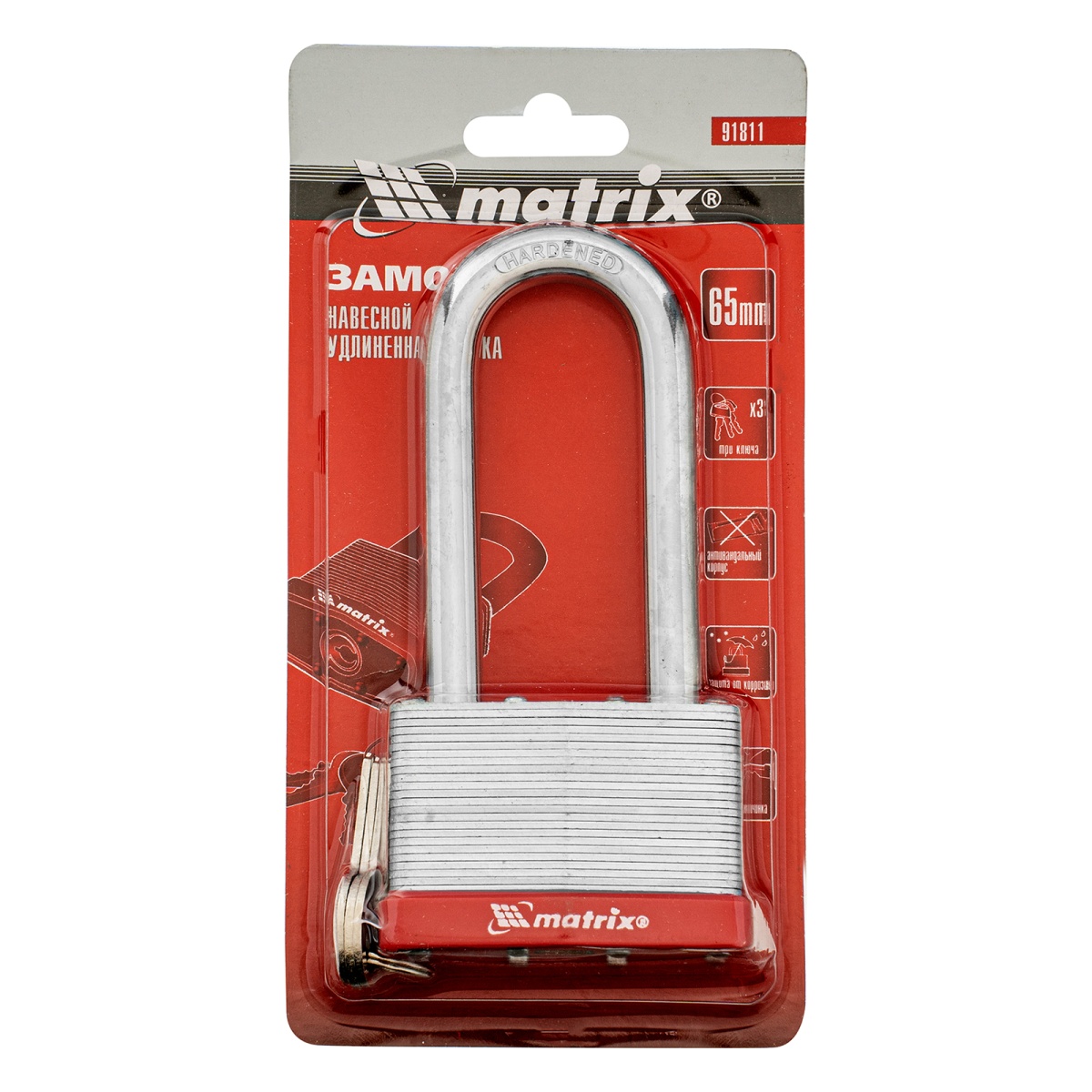 Купить Замок навесной, 65 мм, удлиненная дужка Matrix V1860 по лучшей цене с доставкой - интернет магазин №1 в России