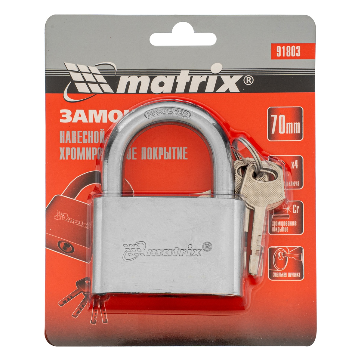 Замок навесной, хромированное покрытие 70 мм Matrix