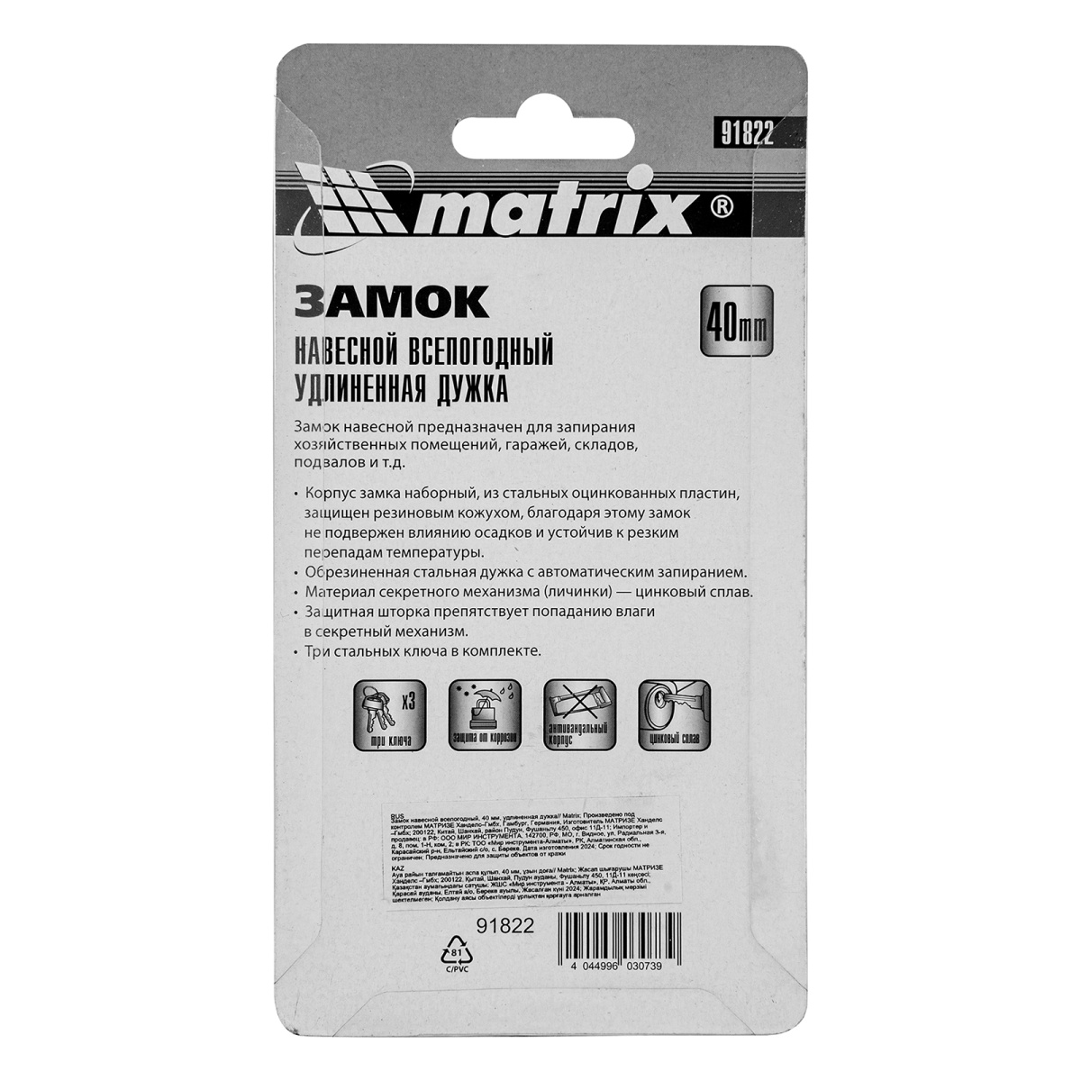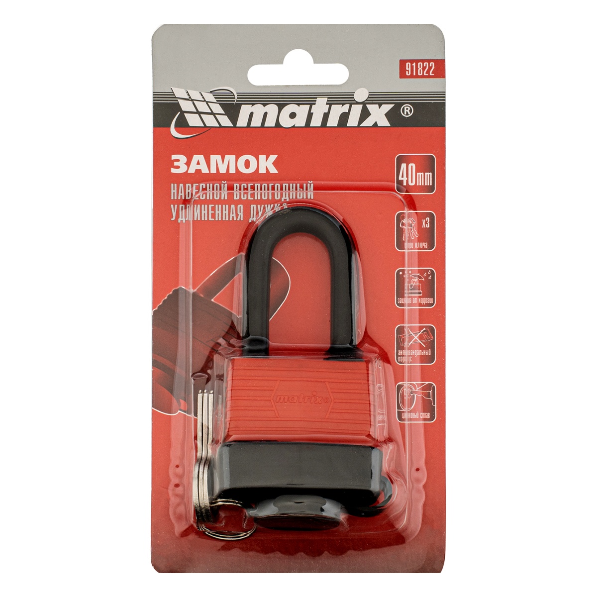 Купить Замок навесной всепогодный, 40 мм, удлиненная дужка Matrix V1837 по лучшей цене с доставкой - интернет магазин №1 в России