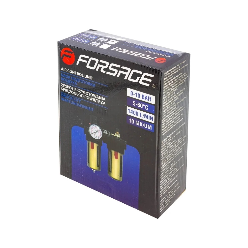 Блок подготовки воздуха 3/8" фильтр-регулятор+лубрикатор (10 Мк, 1400 л/мин, 0-10 bar, рабочая температура 5-60°) Forsage F-BFC3000(54468)