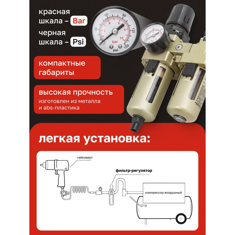 Купить Блок подготовки воздуха Forcekraft 1/4'' фильтр-регулятор + лубрикатор, автоматический слив, 10Мк, 1700 л/мин FK-AC3010-02D(54389) по лучшей цене с доставкой - интернет магазин №1 в России