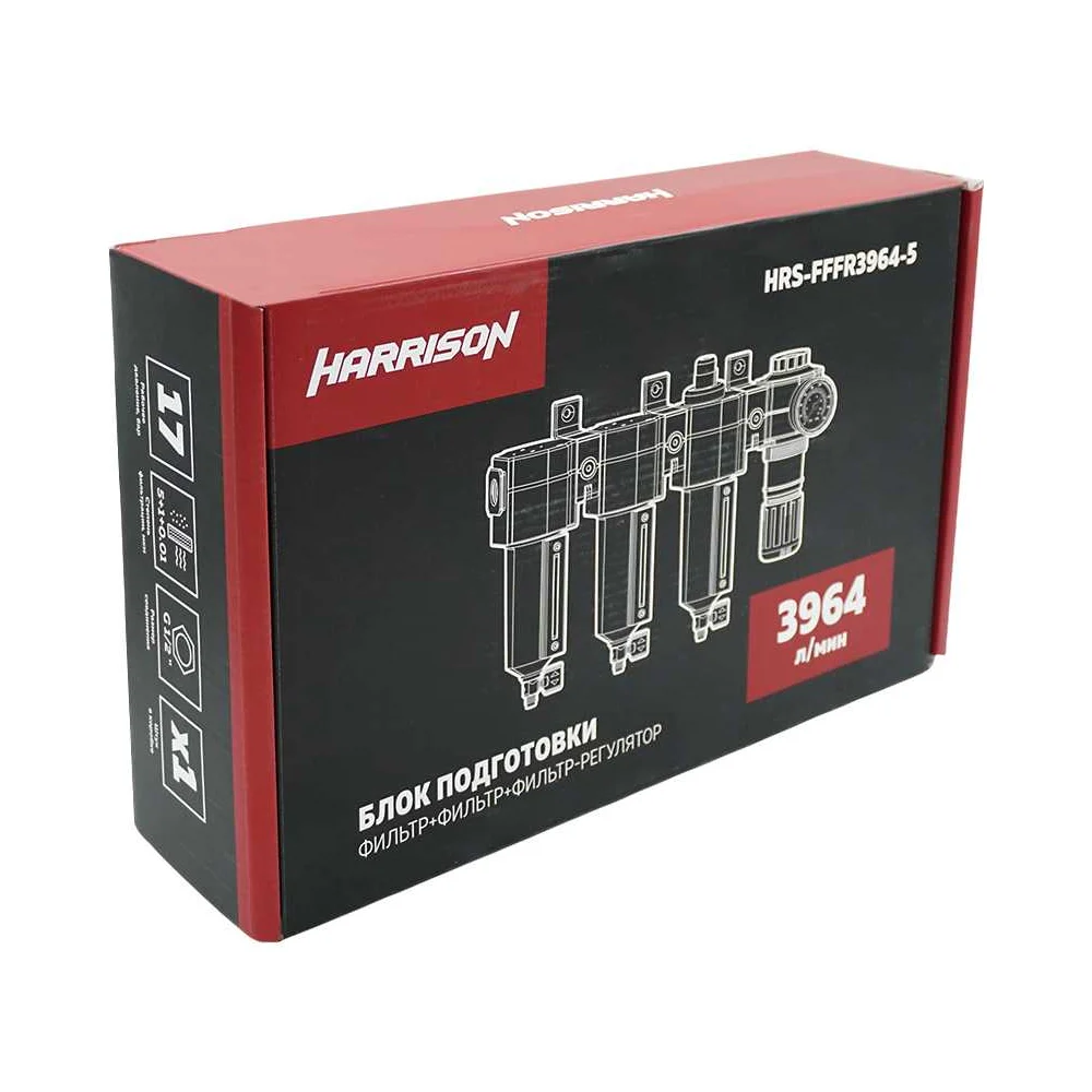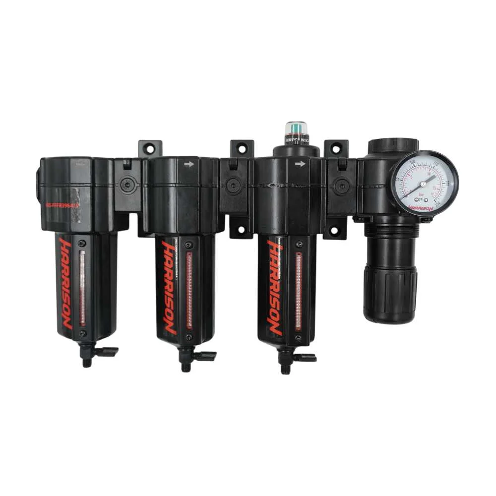 Купить Блок подготовки воздуха Harrison с фильтрами 5 мкм и 1 мкм (3964 л/мин), масляным фильтром 0,01 мкм (990 л/мин) и регулятором 1/2' HRS-FFFR3964/5 по лучшей цене с доставкой - интернет магазин №1 в России