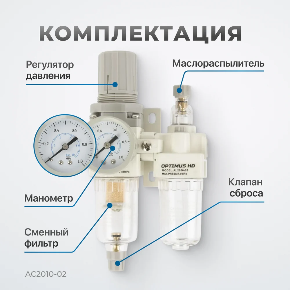 Купить Блок подготовки воздуха HEAVY DUTY 1/4" Optimus AC2010-02 по лучшей цене с доставкой - интернет магазин №1 в России