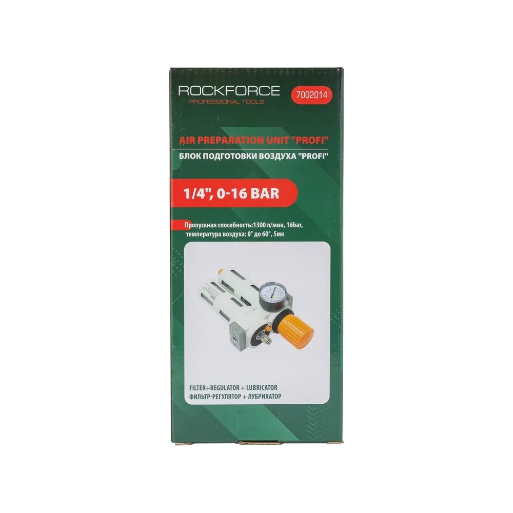 Купить Блок подготовки воздуха Profi: фильтр-регулятор, лубрикатор (1300 л/мин; 16 бар; 1/4") ROCKFORCE RF-7002014(18867) по лучшей цене с доставкой - интернет магазин №1 в России