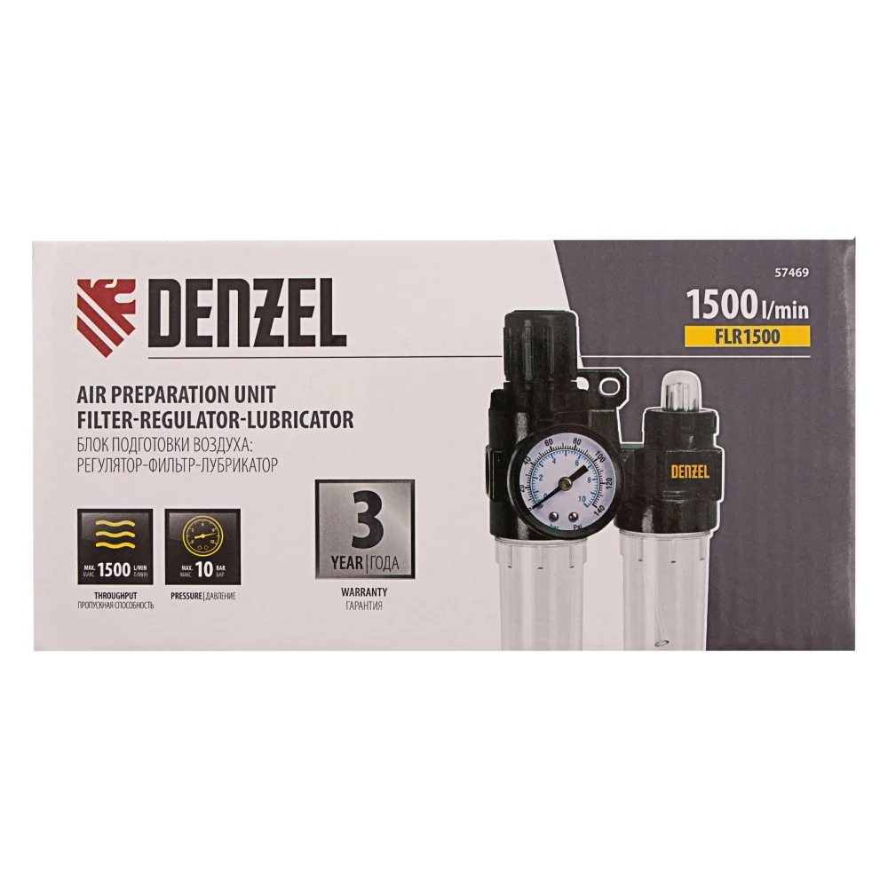 Купить Блок подготовки воздуха регулятор-фильтр-лубрикатор FLR1500, 10 бар, 1500 л/мин, 1/4 Denzel 57469 по лучшей цене с доставкой - интернет магазин №1 в России