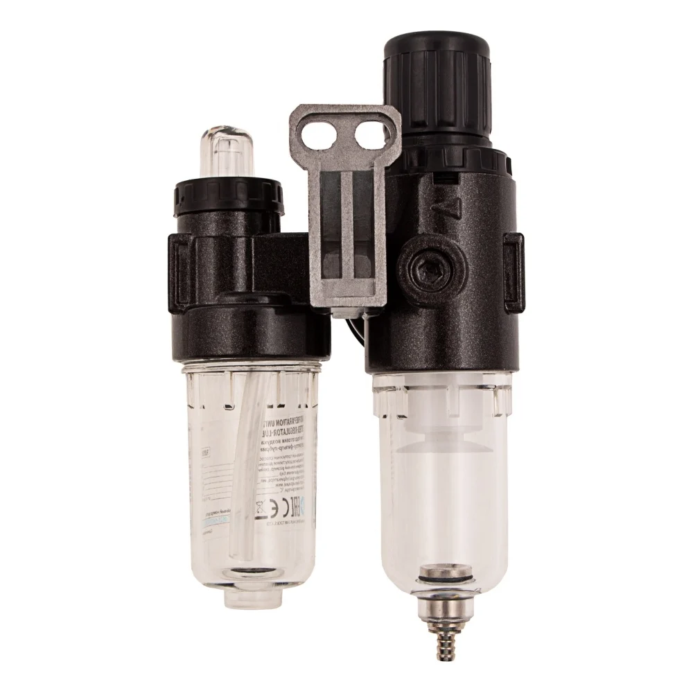 Комплектация Простая настройка лубрикатора — регулировочный винт позволяет дозировать подачу масла в поток сжатого воздуха, ориентируясь на тип подключенного инструмента; Встроенный манометр — оператор сможет быстро снять показания благодаря четкой двухцветной шкале и двум единицам измерения (бары/фунты на квадратный метр,; Psi); Удобный крепеж на стену — с монтажом блока справится даже начинающий мастер; Гарантия 3 года — качество устройства подтверждено производителем