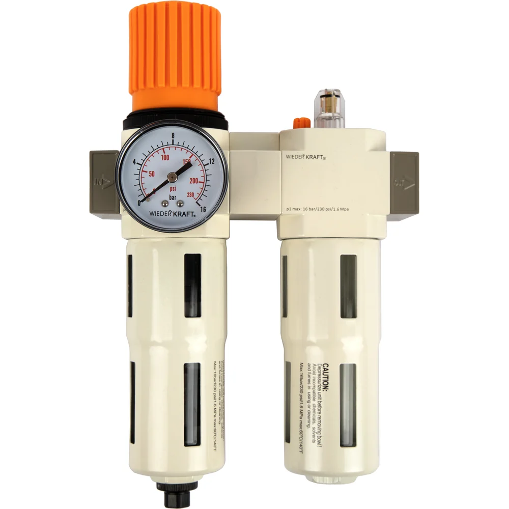 Купить Блок подготовки воздуха WIEDERKRAFT 1/2, 16 бар с влагоотделителем 5 мк, лубрикатором и регулятором давления WDK-70140FA по лучшей цене с доставкой - интернет магазин №1 в России