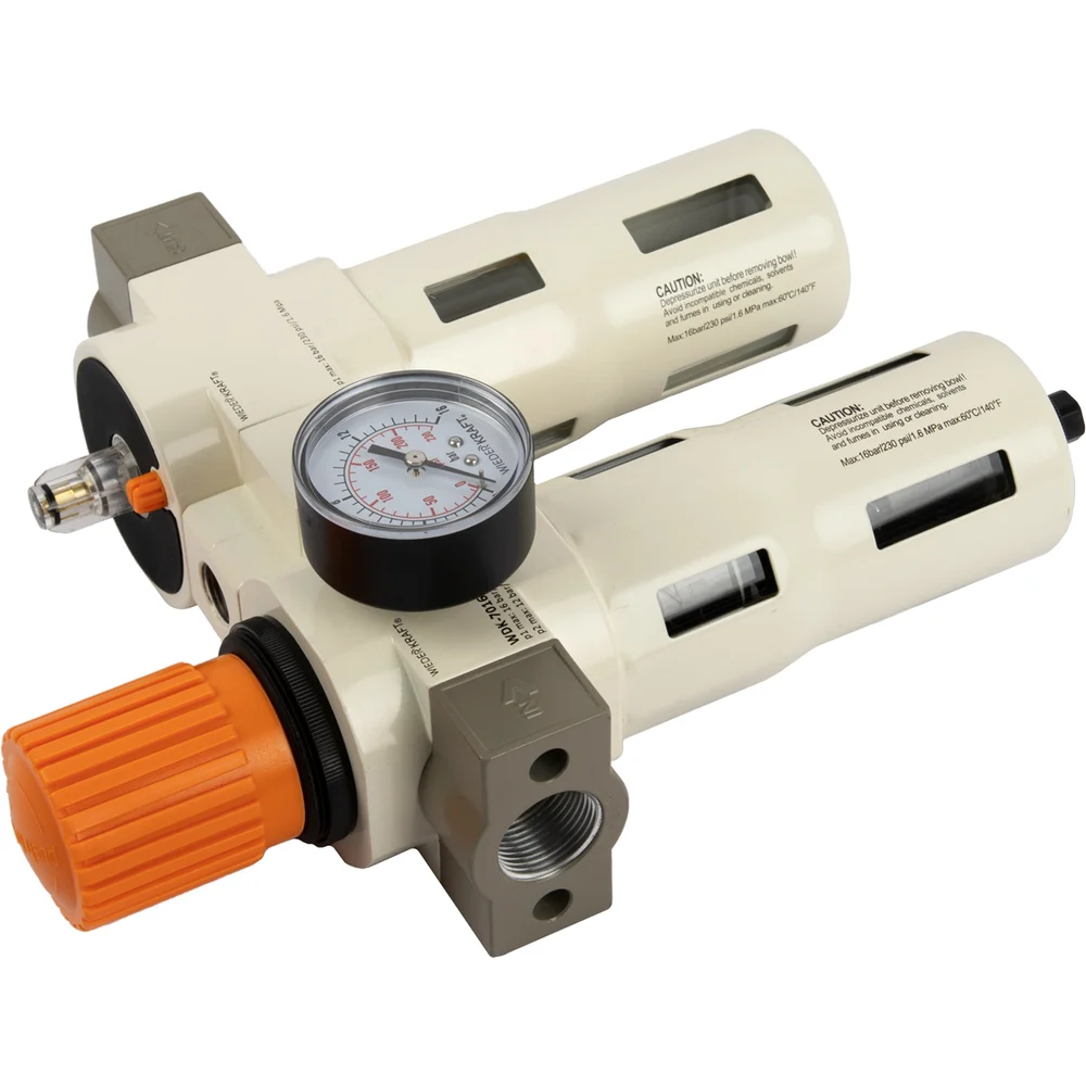 Купить Блок подготовки воздуха WIEDERKRAFT 3/4, 16 бар с влагоотделителем 5 мк, лубрикатором и регулятором давления WDK-70160FA по лучшей цене с доставкой - интернет магазин №1 в России