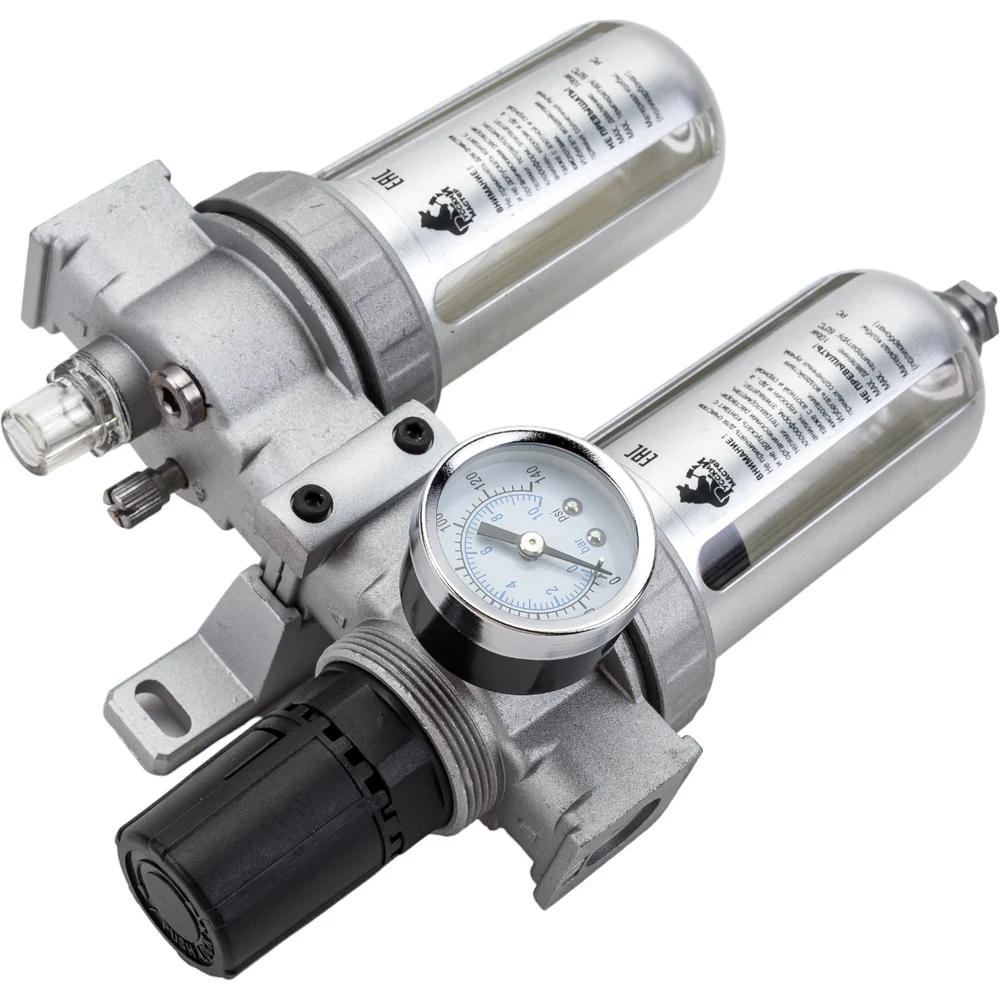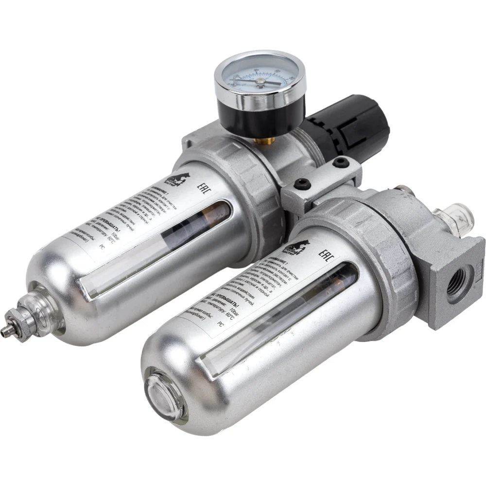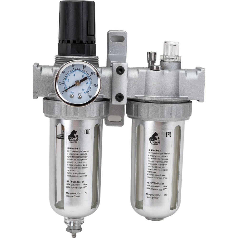Купить Фильтр-влагоотделитель с регулятором давления, манометром и лубрикатором AFRL80 Русский Мастер РМ-14924 по лучшей цене с доставкой - интернет магазин №1 в России