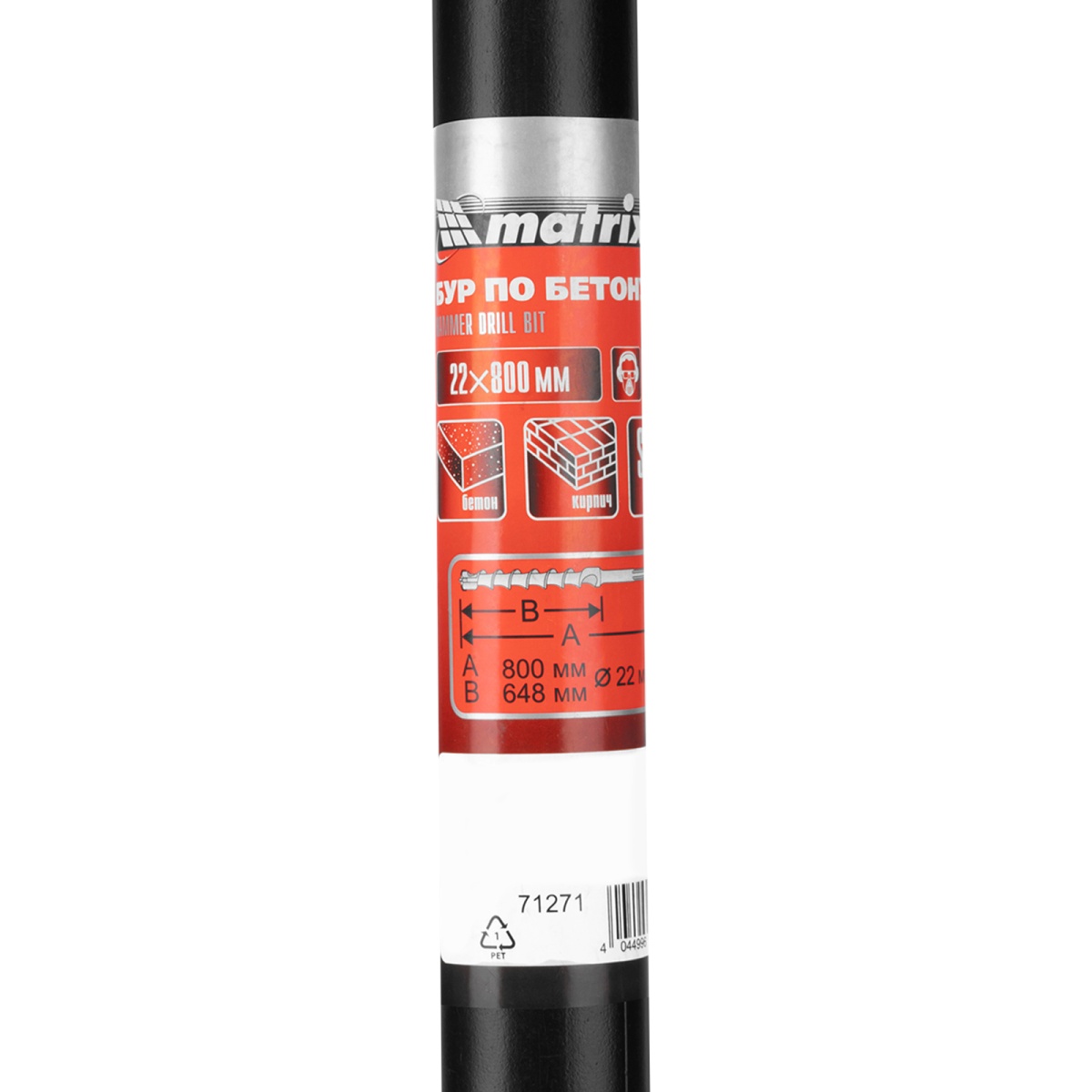Бур по бетону, 22 х 800 мм, SDS Max c крестовой пластиной Matrix
