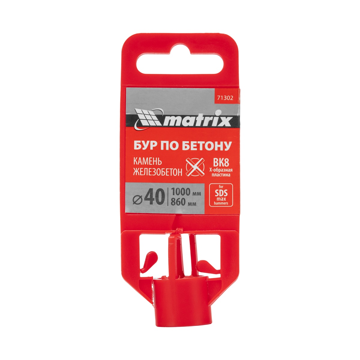 Бур по бетону, 40 х 1000 мм, SDS MAX c крестовой пластиной Matrix