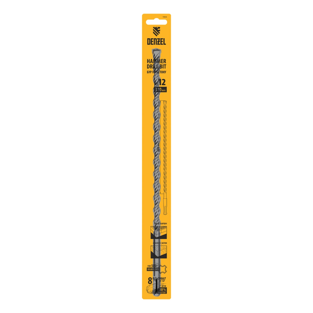 Бур по бетону, двойная спираль, три пылеотводящие кромки, 12 x 310 мм DENZEL