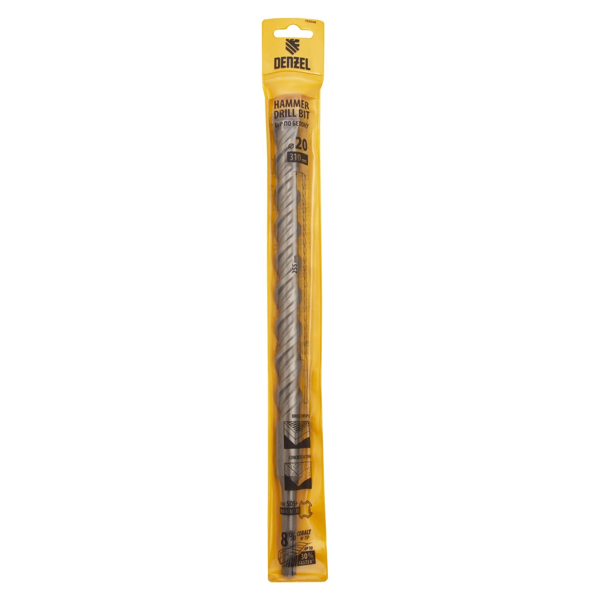 Бур по бетону, двойная спираль, три пылеотводящие кромки, 20 x 310 мм DENZEL