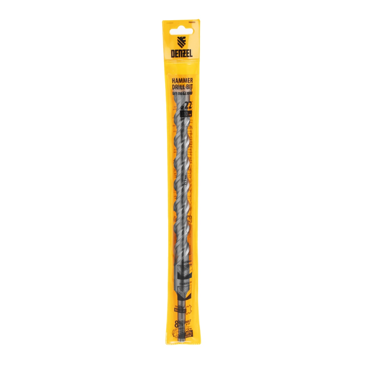 Бур по бетону, двойная спираль, три пылеотводящие кромки, 22 x 310 мм DENZEL