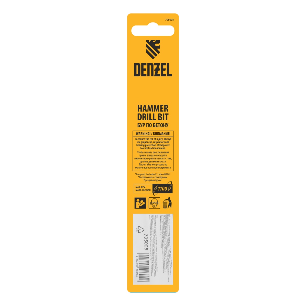 Бур по бетону, двойная спираль, три пылеотводящие кромки, 6 x 110 мм DENZEL