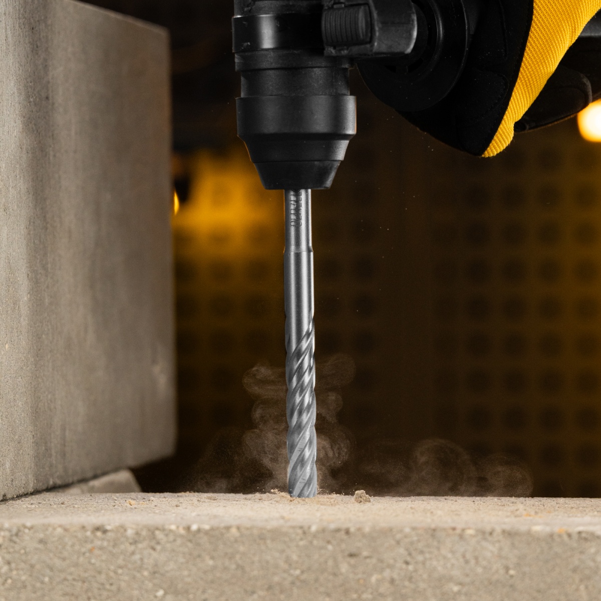 Наличие клапана для сброса давления Бур по бетону, цельная крестовая пластина, 12x165 мм, SDS PLUS Denzel