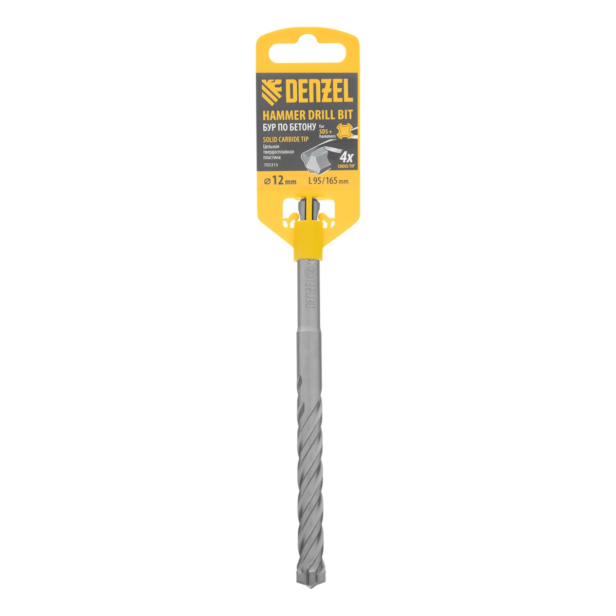 Бур по бетону, цельная крестовая пластина, 12x165 мм, SDS PLUS Denzel